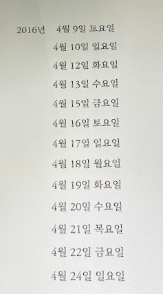 2016년 4월 9일부터 시작된 그들의 삶을 일기를 적어놓듯, 날짜별 순서가 마당이 있는 집 원작 소설의 목차입니다.